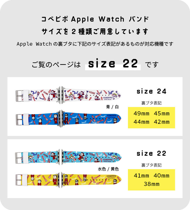 アップルウォッチ バンド コベピポ KOBEPIPO 別注デザイン オリジナル 神戸 バンド 22サイズ / 38mm 40mm 41mm