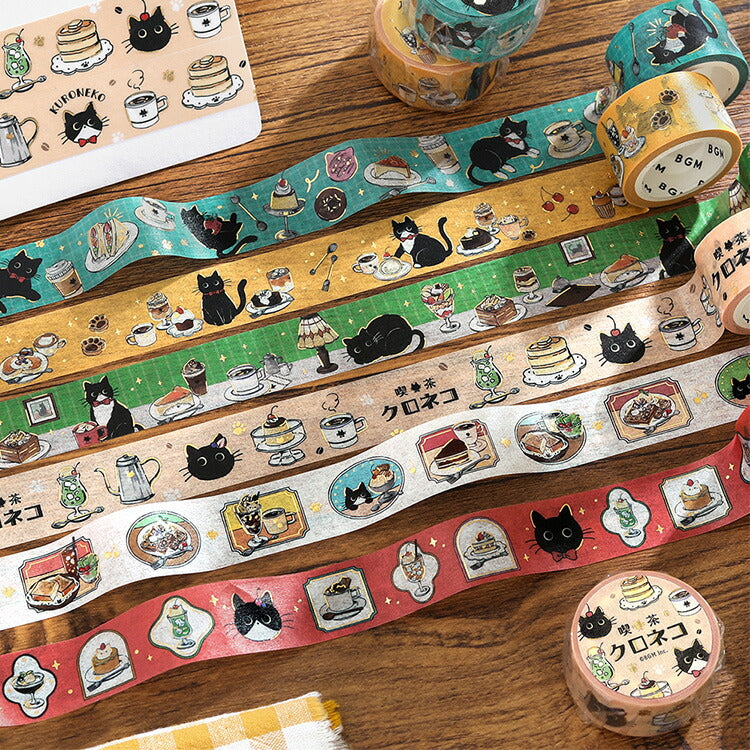 BGM マスキングテープ 6個セット 喫茶クロネコ 箔押し 20mm