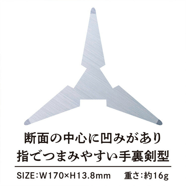 ●形状は三角柱で断面の中心に凹みがあり指でつまみやすい手裏剣型