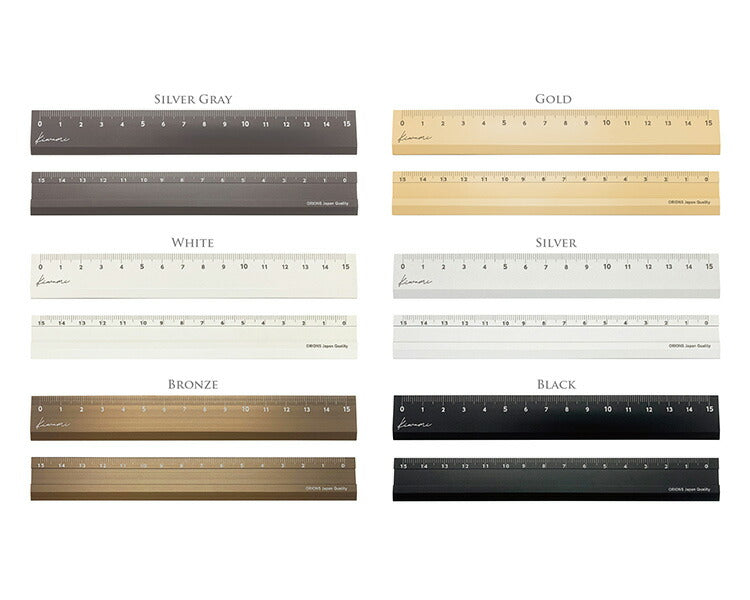 Kiwami LR左右利き手対応アルミ定規 15cm ブラック ブロンズ ゴールド シルバーグレー シルバー ホワイト