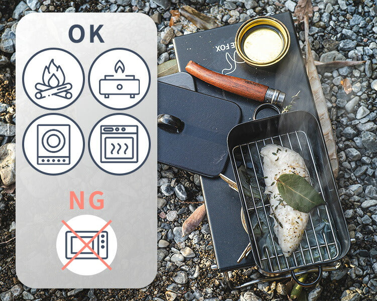 酸や熱に強く、トマトやワインを使った料理もOK。焚火・IH・オーブンなど幅広い熱源に対応し、調理の幅が広がります。