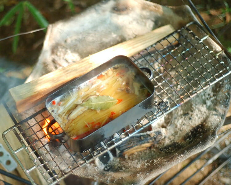 直火OKの琺瑯製メスティンは、自宅でもキャンプでも使える柔軟さが魅力です。