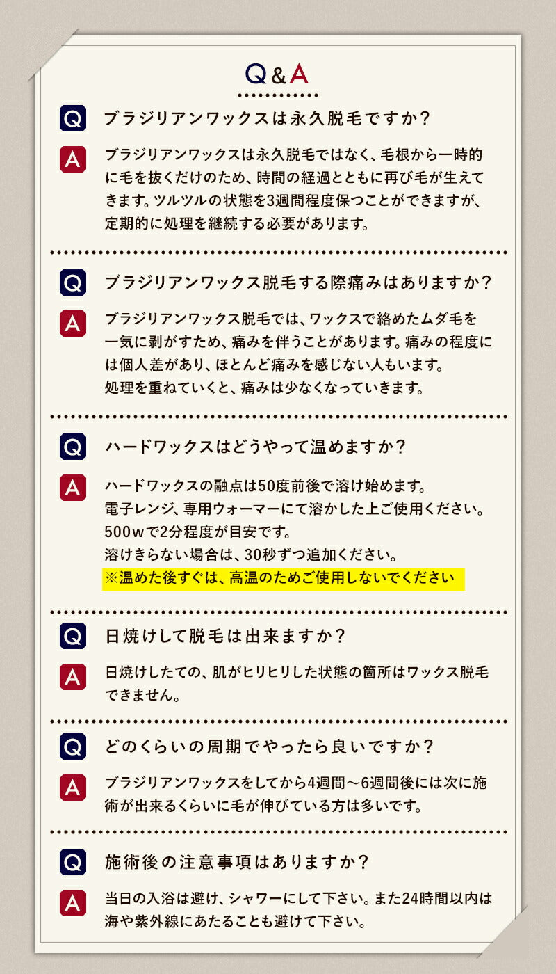 ・容器を取り出す際、ワックスを肌に塗る際は火傷に十分お気を付けください。